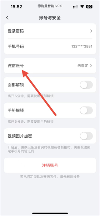 3、在账号与安全页面中,选择微信账号选项,按页面提示完成微信账号的绑定操作。