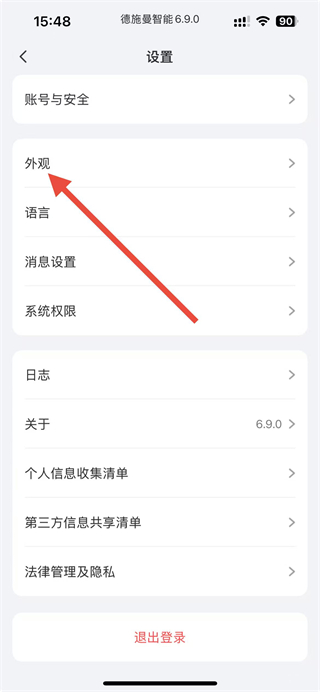 3、在设置页面里,选择外观选项,进入外观设置的界面。