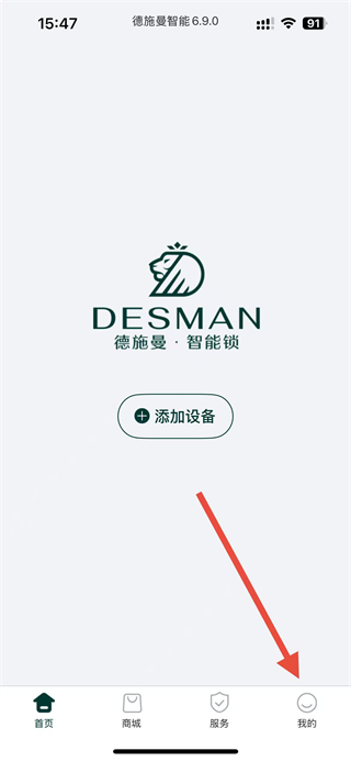 1、打开德施曼智能app,点击底部我的选项,进入个人相关界面。