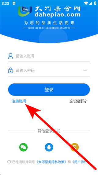 1、打开大河票务,点击底部的我的,进入我的页面。