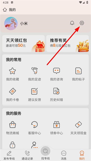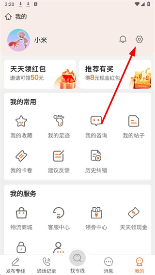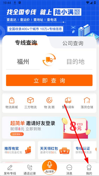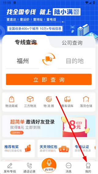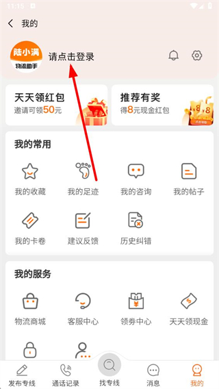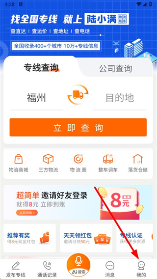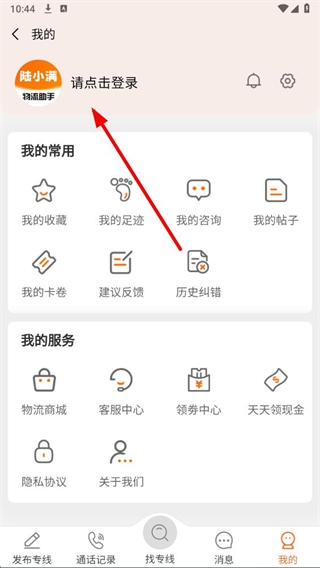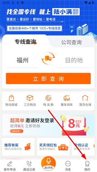 1、在陆小满物流助手app首页,点击右下角我的按钮,进入个人页面。