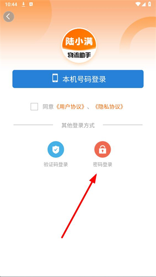 3、在登录选择页面,点击密码登录选项,进入密码登录输入页面。