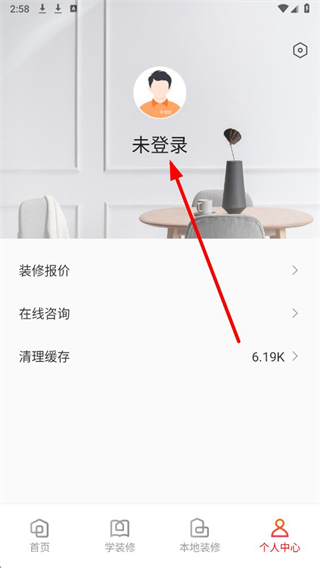 1、打开爱空间装修app,在首页点击底部的个人中心选项,进入个人中心页面。