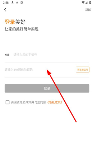 3、在界面输入手机号,获取验证码,勾选同意隐私政策后,点击登录按钮,即可完成登录。