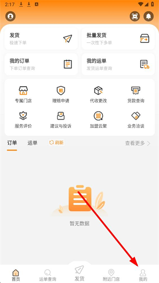 1、打开云聚物流app,在首页点击底部我的选项,进入个人页面。