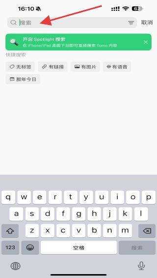 1、启动flomo浮墨笔记应用软件,点击右上角搜索的按钮。