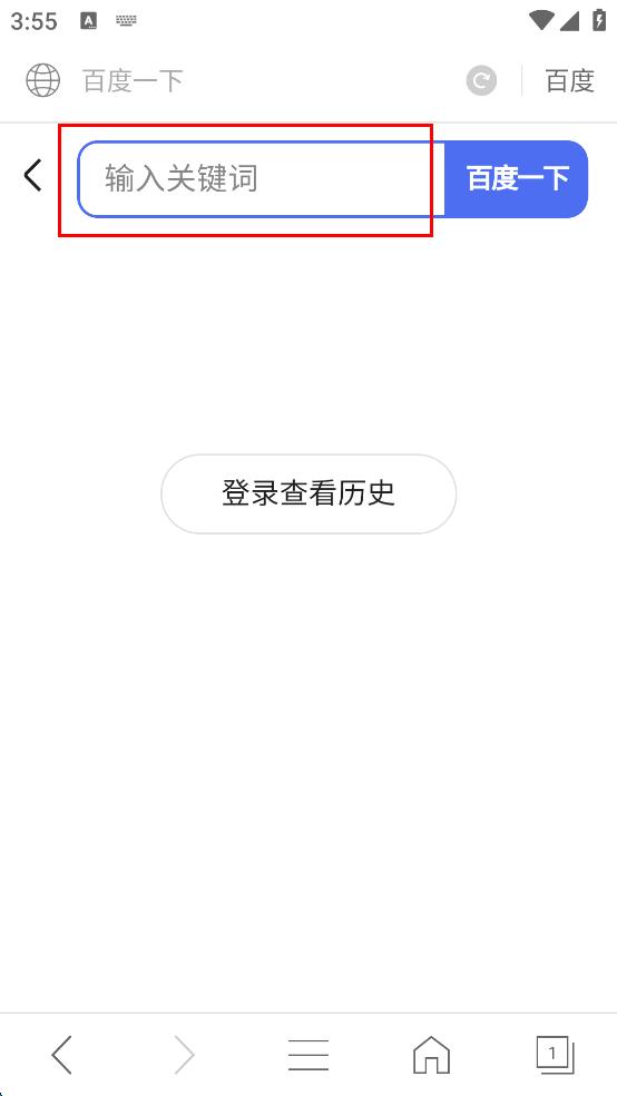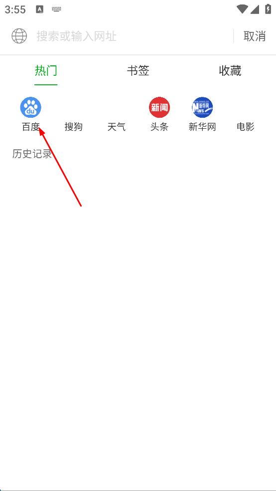 2、在搜索栏中,点击“百度”进入百度搜索页面。