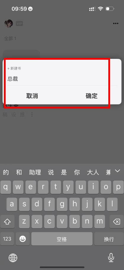 2、在新建书窗口中输入作品名称,比如总裁,输入完成后点击确定按钮。