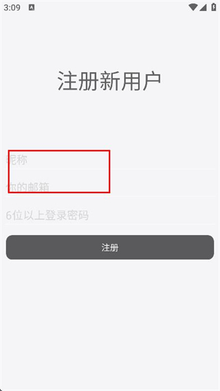 2、在注册新用户页面,依次填写昵称、邮箱。