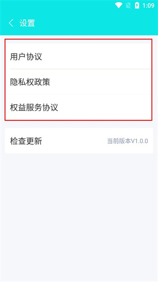 4、在设置界面可查看用户协议、隐私权政策等相关内容,完成设置操作。
