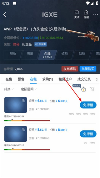 3、在详情页,点击免押租按钮,进入IGXE登录页面。