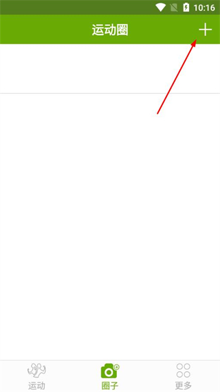 2、在运动圈页面的右上角找到+并点击,进入动态发布的编辑界面。