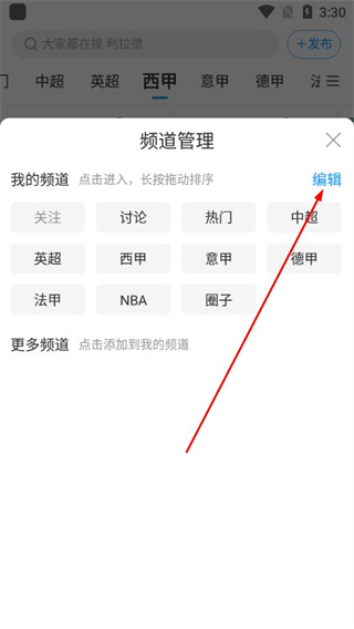 2、在频道管理页面点击编辑,进入频道编辑模式。