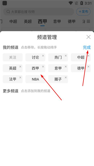3、完成频道的移除/排序调整后,点击完成,即可保存编辑后的频道设置。