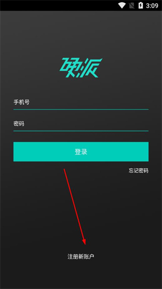 1、打开硬派健身的登录页面,点击底部的注册新账户,进入注册界面。