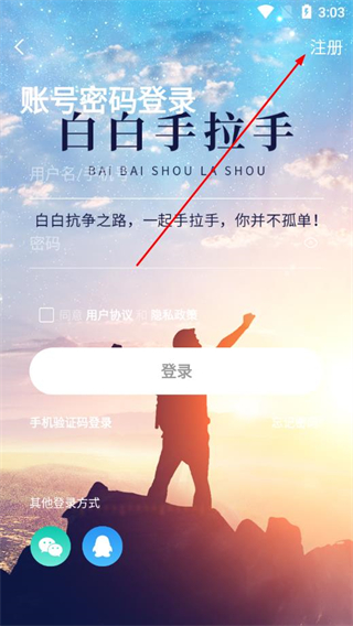 3、在登录界面点击右上角的注册选项,进入注册新账号页面。