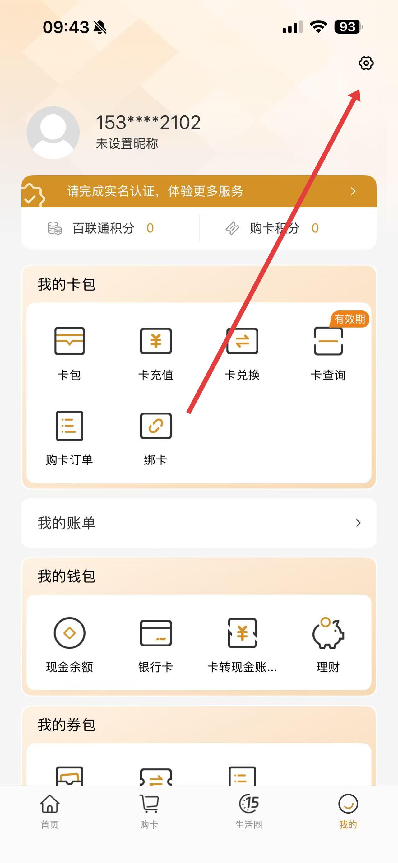 2.卡包:批量管理会员卡,积点卡用于线下支付。