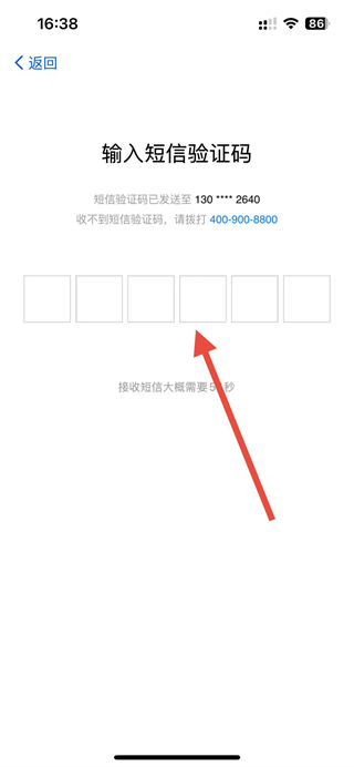 4、在验证码输入页面,填写收到的短信验证码,完成账号注册流程。