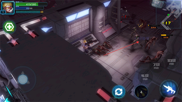 2、使用武器攻击靠近的僵尸,击败后获取7级经验值,积累经验提升等级,增强战斗能力。