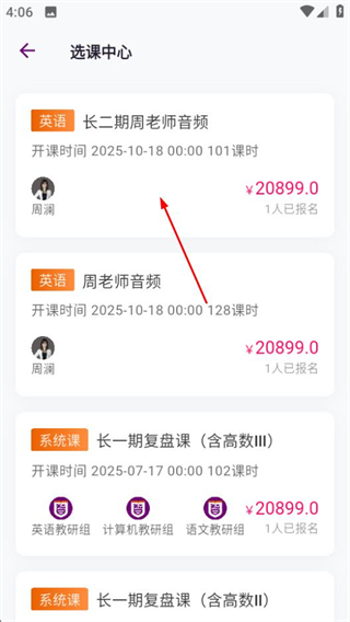 2、在选课中心页面,点击目标课程,进入课程详情页。