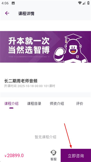3、在课程详情页,点击立即咨询按钮,即可咨询该课程的相关信息。