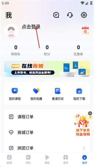1、在星途径在线课程页面,点击底部的我的选项,进入个人中心页面。