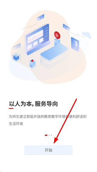 1、打开云中苏大,点击页面底部开始按钮,进入后续操作界面,开启账号相关流程。