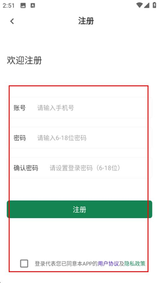 4、在注册页面,填写信息并勾选协议后,点击注册完成账号注册。