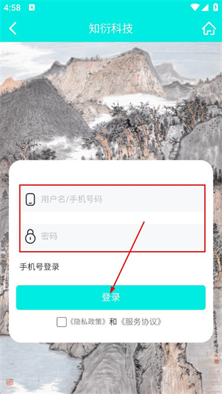 4、在密码登录界面,填写用户名/手机号码和密码,点击登录,完成账号登录。