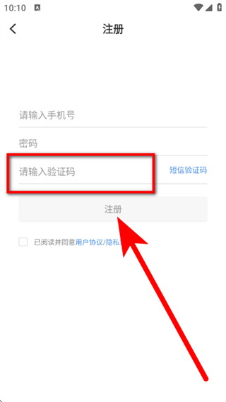 5、在输入框,输入验证码并勾选协议后,点击注册,完成注册。