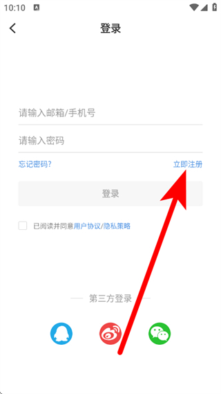 3、在登录页面,点击立即注册,进入注册页面。