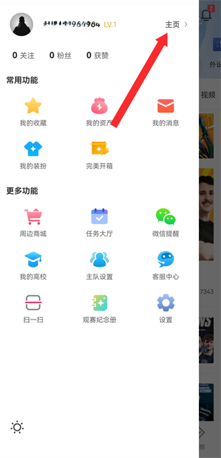 2、在个人功能的页面,我们需要点击主页,进入个人主页界面。