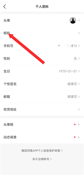 4、在个人资料的页面点击昵称,即可进行名字修改的操作。