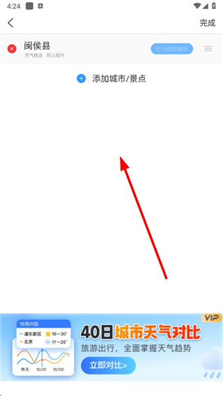 4、点击后,即可在天气列表删除该城市。