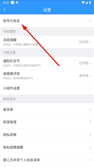 3、在设置页面,点击账号与安全选项,进入账号与安全页面。