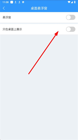 4、在该界面打开悬浮窗开关,可按需开启只在桌面上展示,完成桌面小窗口的显示设置。