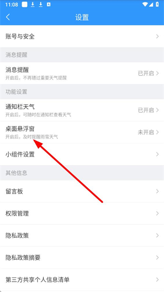 3、在设置页面中,选择桌面悬浮窗选项,进入桌面悬浮窗设置界面。