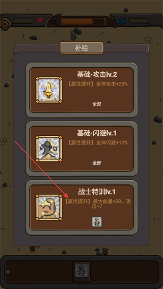 3、再次打开补给界面,选择基础·攻击lv.2升级攻击属性至25%,增强部队战力。