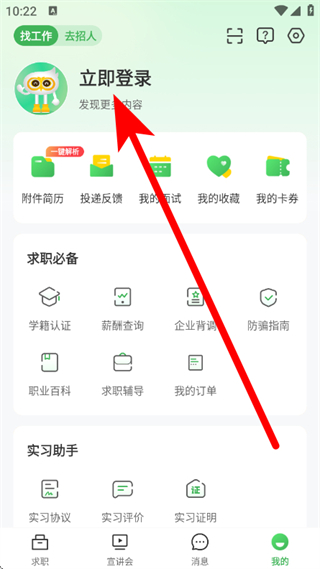 2、在我的页面,点击立即登录,进入登录页面。