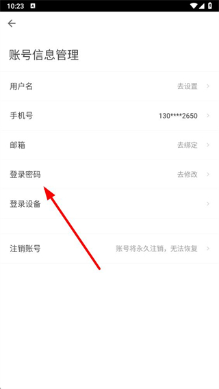 4、在账号信息管理页面点击登录密码选项,按提示操作即可更改密码。