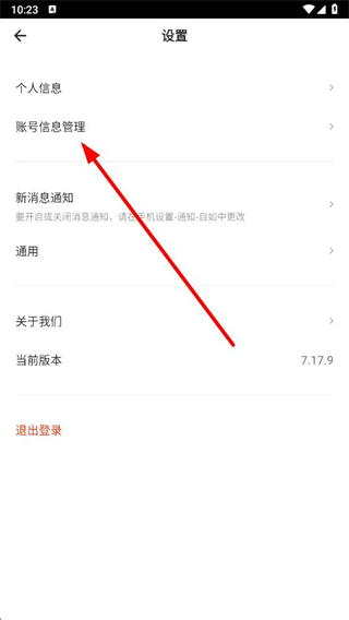 3、在设置页面点击账号信息管理选项,进入账号信息管理页面。