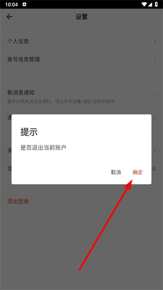 4、在提示弹窗中,点击确定按钮,即可完成账号的退出登录操作。