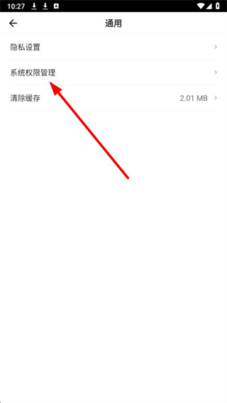 3、在通用界面,点击系统权限管理选项,进入系统权限管理页面。