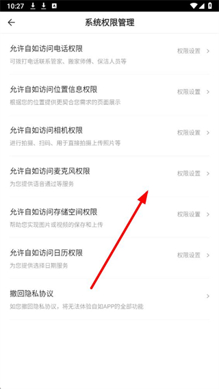 4、在该页面可查看各类权限,点击对应权限右侧的权限设置即可调整权限状态。