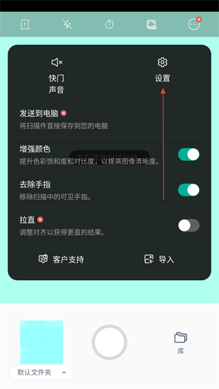 1、打开vFlat扫描仪进入扫描界面,点击圆形功能按钮弹出操作菜单。