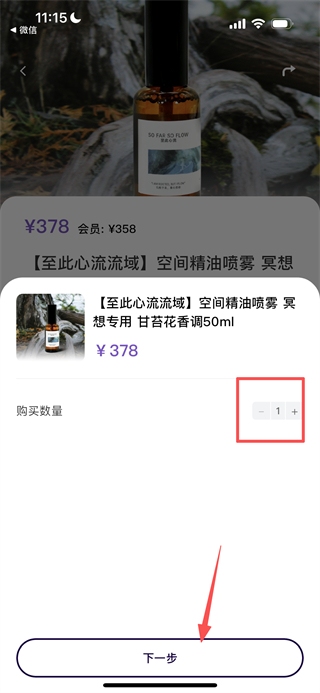 2、在商品页面,点击目标商品如空间精油喷雾,进入商品详情页。