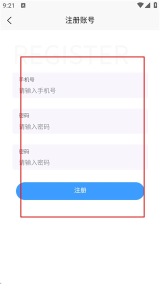 4、在注册页面,填写信息后,点击注册完成账号注册。