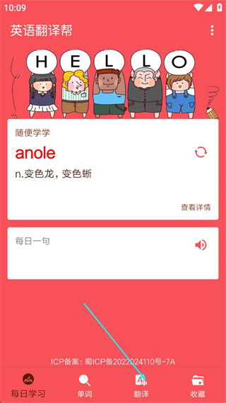 3、实用的每日一句、随便学学、及收藏功能。