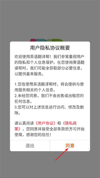 1、打开软件后查看用户隐私协议概要,点击界面右下角的“同意”按钮进入主界面。