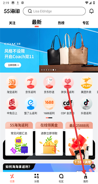 1、在55海淘APP首页点击右下角“我的”,进入个人中心页面。